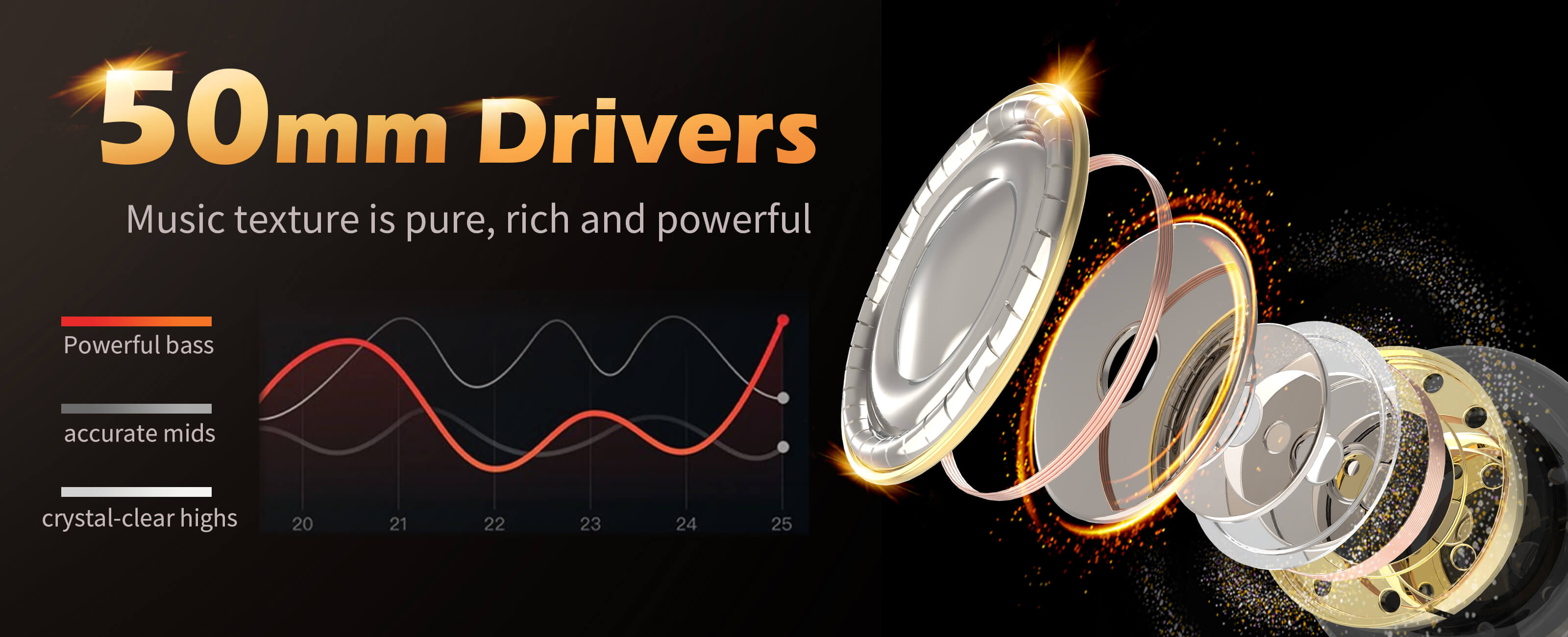 Larger than the typical 30-40mm driver units, the Ti660x uses 50mm drivers to provide a wider soundstage, stronger low-frequency impact, and clearer details, excelling in both music listening and professional monitoring.