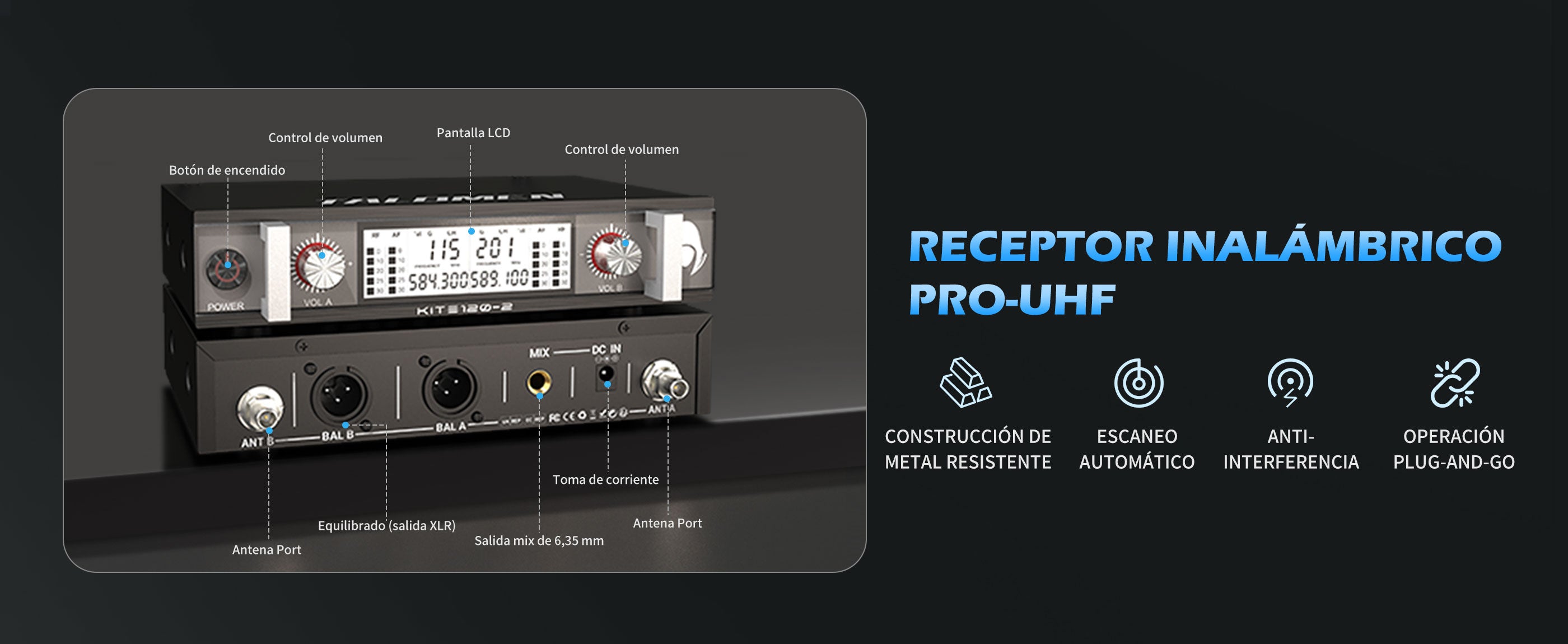 Talomen K120 | Sistema de micrófono inalámbrico UHF profesional