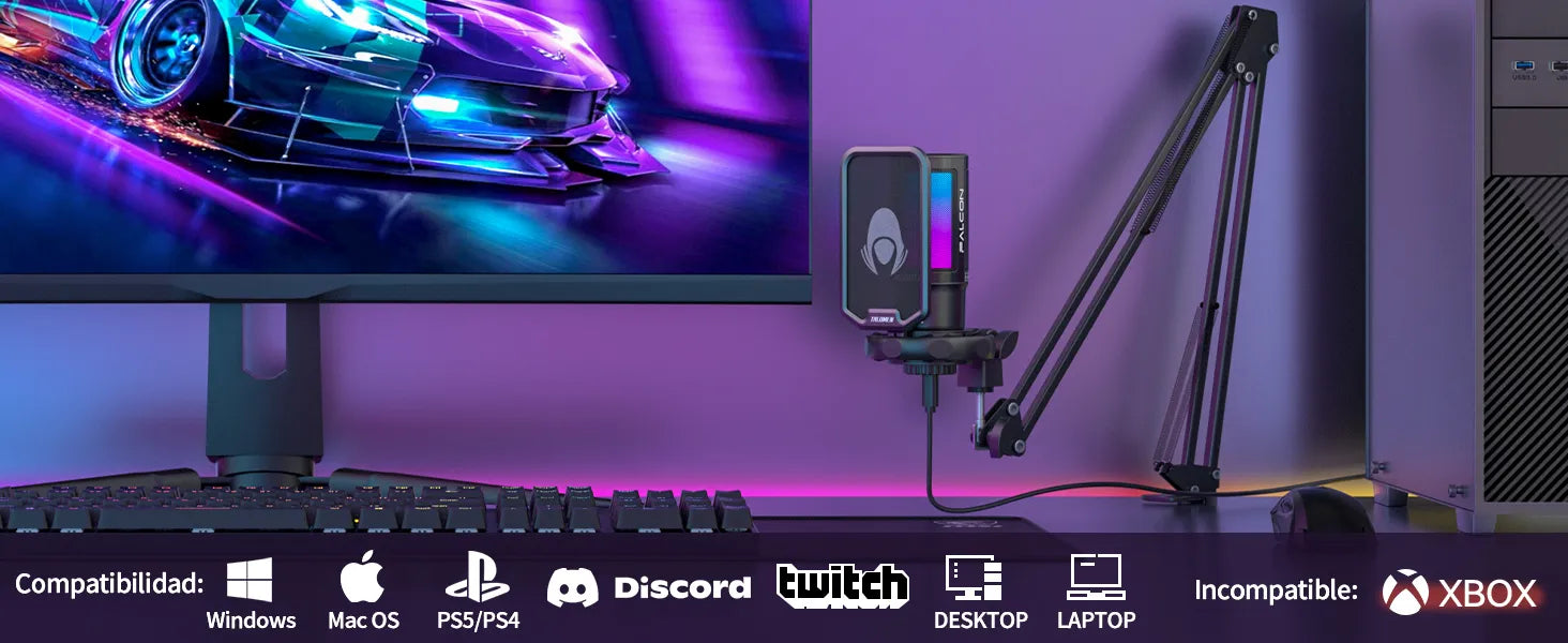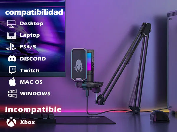 No necesita complementos adicionales ni pasos complicados de configuración del dispositivo, es compatible con Windows, Mac y PS4 PS5. El extremo del micrófono es una interfaz tipo C, que es reversible, no hay problema para enchufarlo de la manera correcta en un ambiente de juego oscuro. El cable USB de 2,5 m es lo suficientemente largo como para extenderse desde la parte posterior del host hasta el escritorio para grabar audio.