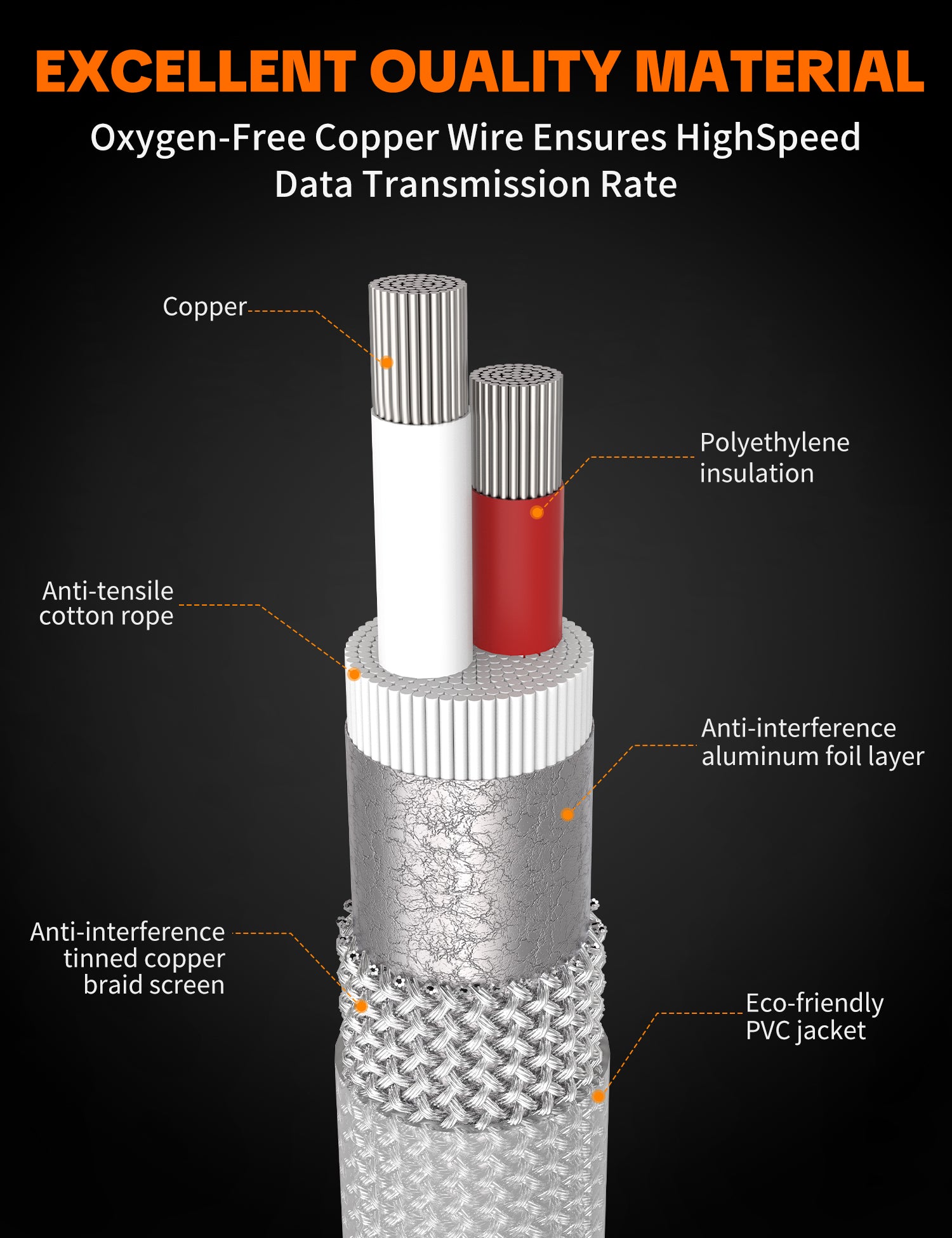 Male to Female Balanced Mic Cord with Oxygen-Free Copper 3-Pin XLR Connectors for Audio Mixer Studio Monitor PA System Microphone Podcast Recording