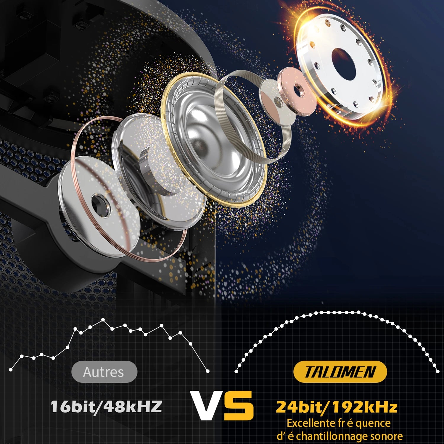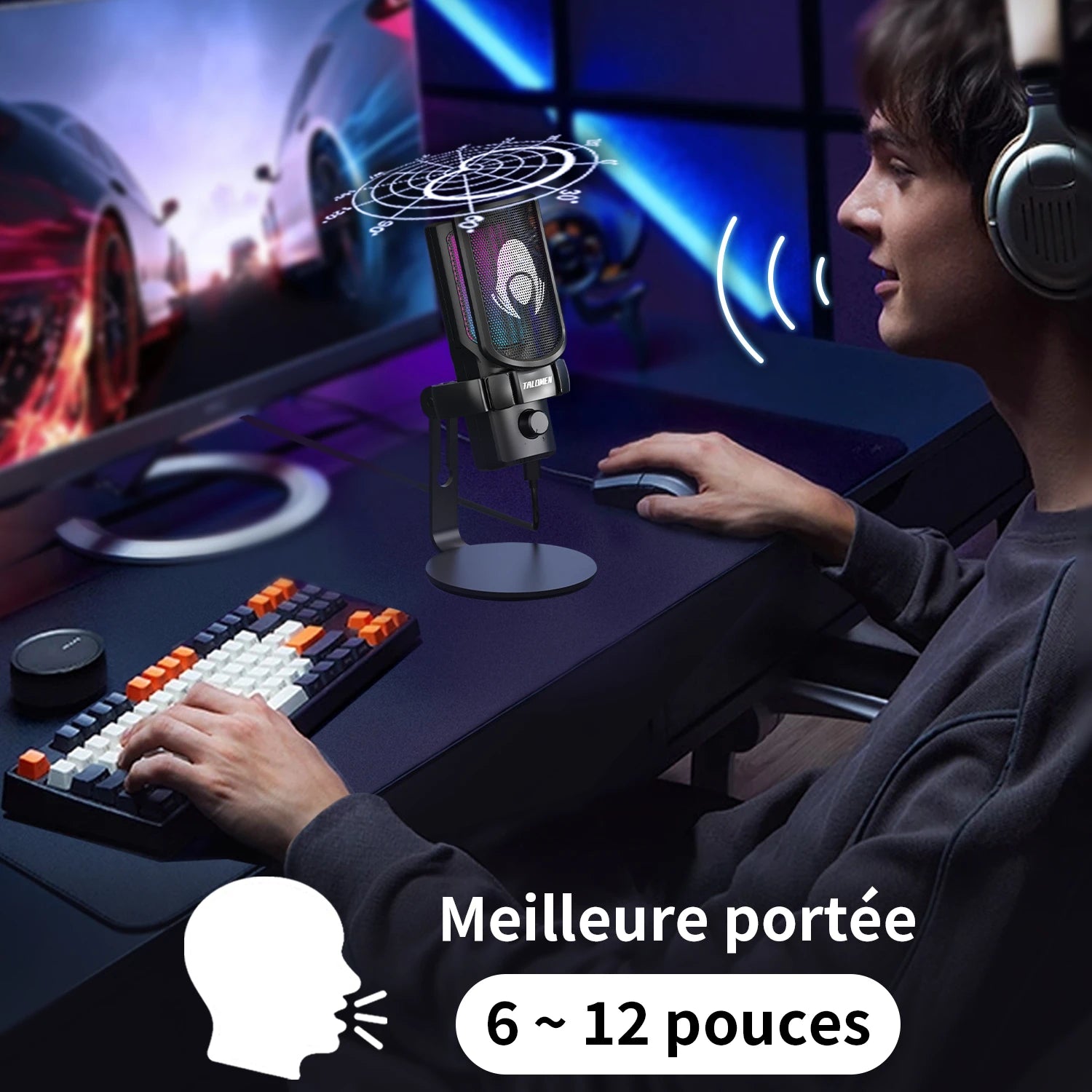 Le micro de jeu USB Talomen est doté d'un éclairage RVB vibrant avec sept modes de couleur, créant une atmosphère de jeu immersive.
