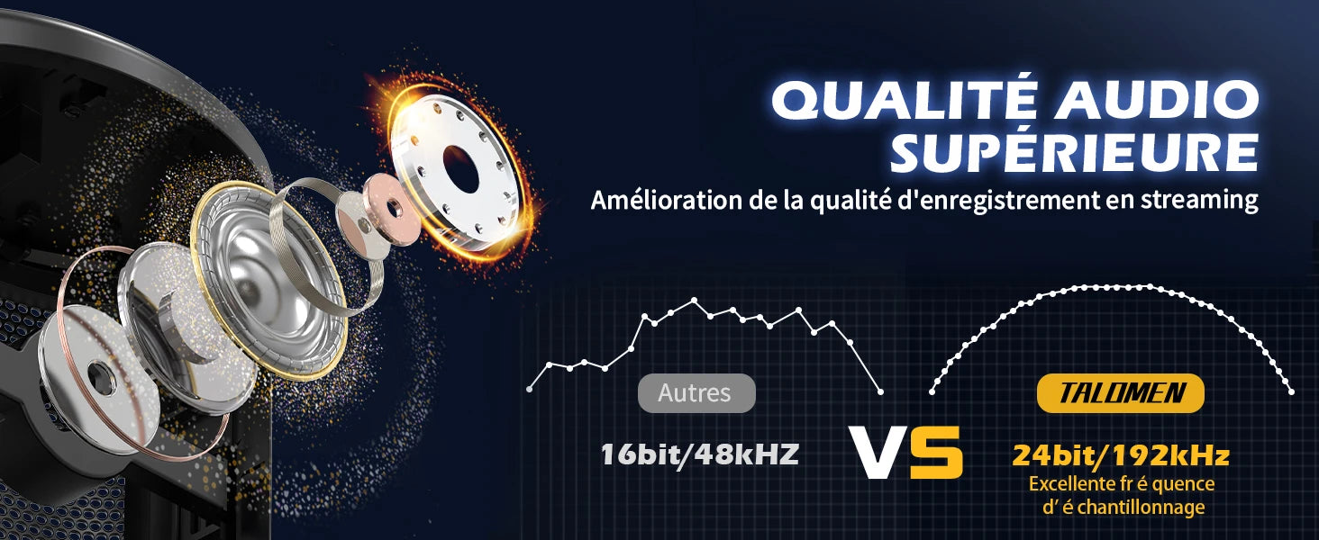Comparé à d'autres produits du même type, le microphone USB Talomen Eyas a un meilleur taux d'échantillonnage de qualité sonore, ce qui peut vraiment améliorer la qualité du son que vous transmettez.