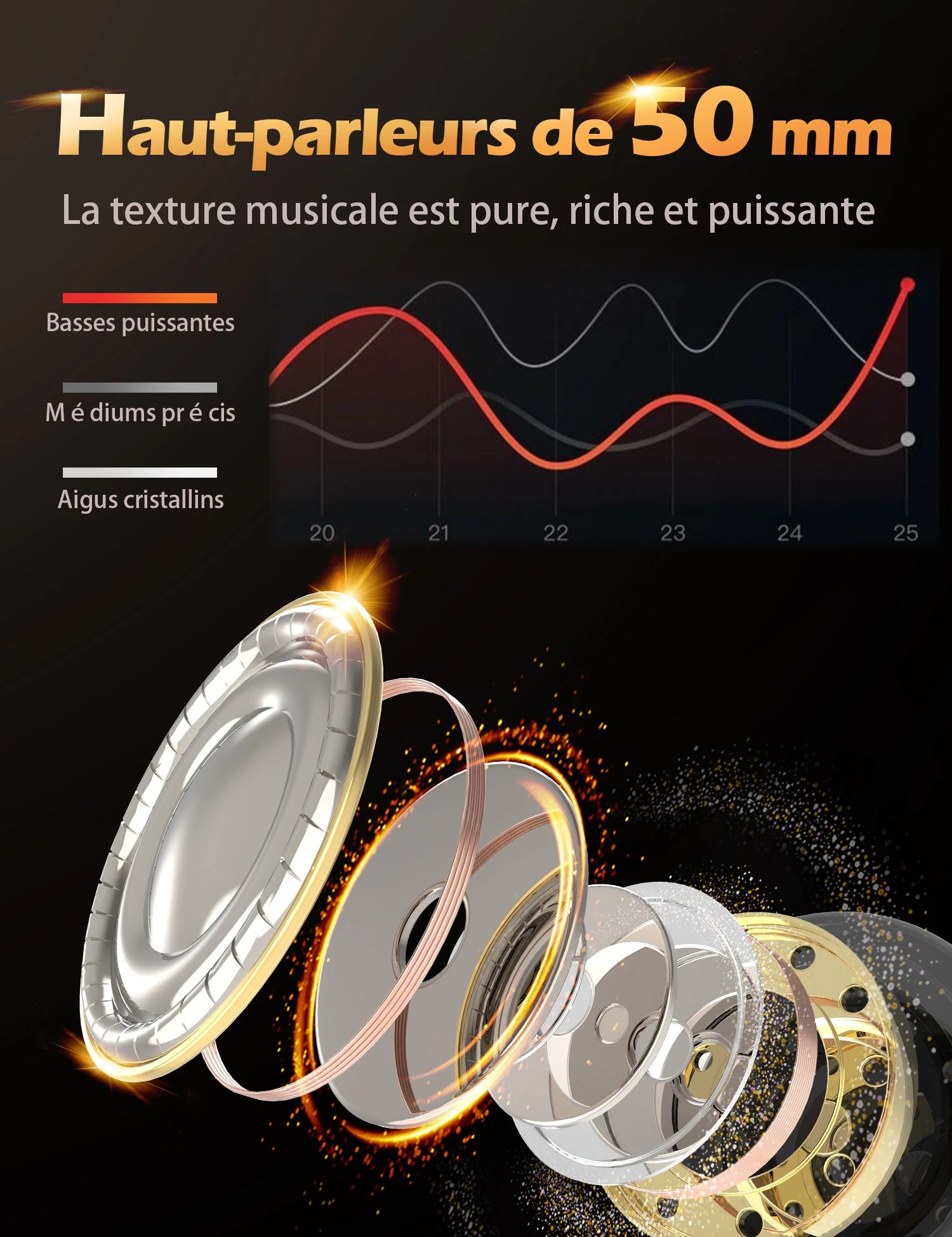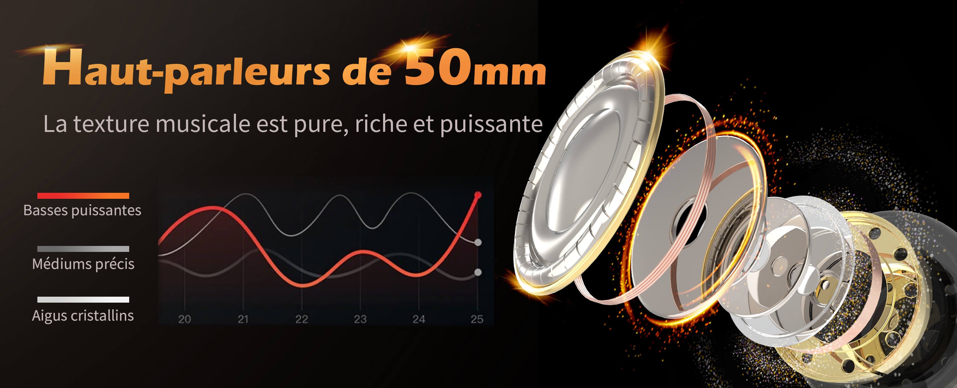 Plus grand que les haut-parleurs classiques de 30 à 40 mm, le Ti660x utilise des haut-parleurs de 50 mm pour offrir une scène sonore plus large, un impact plus fort dans les basses fréquences et des détails plus clairs, excellant à la fois dans l'écoute de musique et la surveillance professionnelle.
