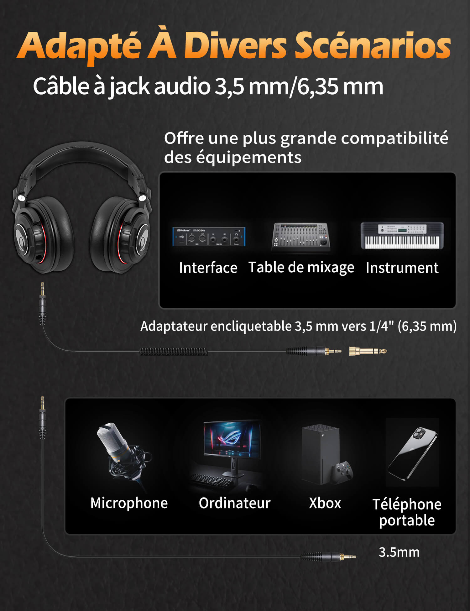 Connecteurs : Ф3,5 mm + Ф6,3 mm