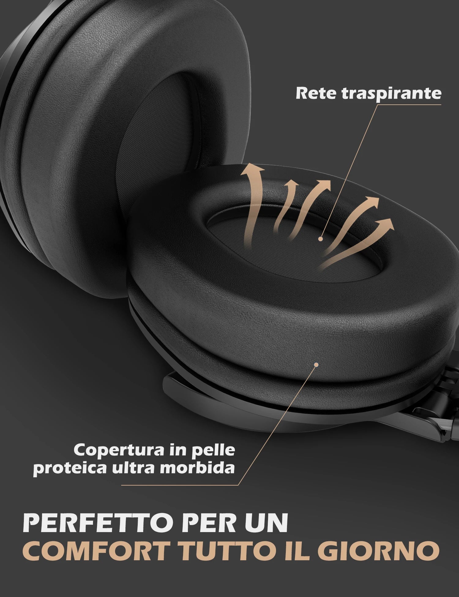 La copertura in pelle proteica ultra morbida e la rete traspirante sono conformi all'ergonomia e avvolgono delicatamente le orecchie, in modo che non si sentano a disagio anche se indossi le cuffie W50x tutto il giorno. La vestibilità perfetta non solo riduce al minimo la pressione e la perdita di suono, ma riduce anche efficacemente il rumore ambientale.