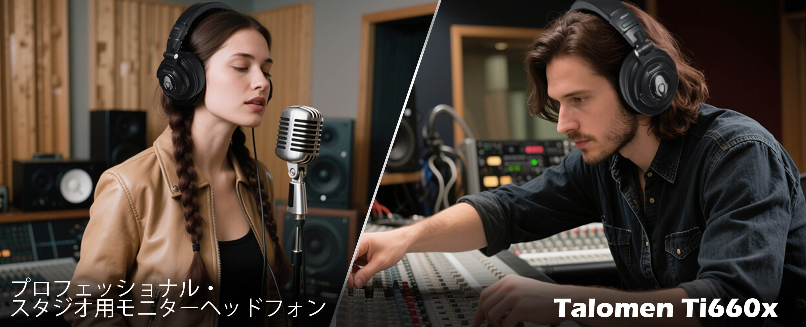 Talomenのプロフェッショナル・スタジオモニターヘッドホンは、レコーディングスタジオに最適です。その構造、快適なデザイン、そして優れた音響性能のいずれにおいても、Ti660xはミキシング、DJ、マスタリング、ポストプロダクション、オーディオフォレンジック、そしてパーソナルリスニングといったモニタリングに最適な選択肢です。