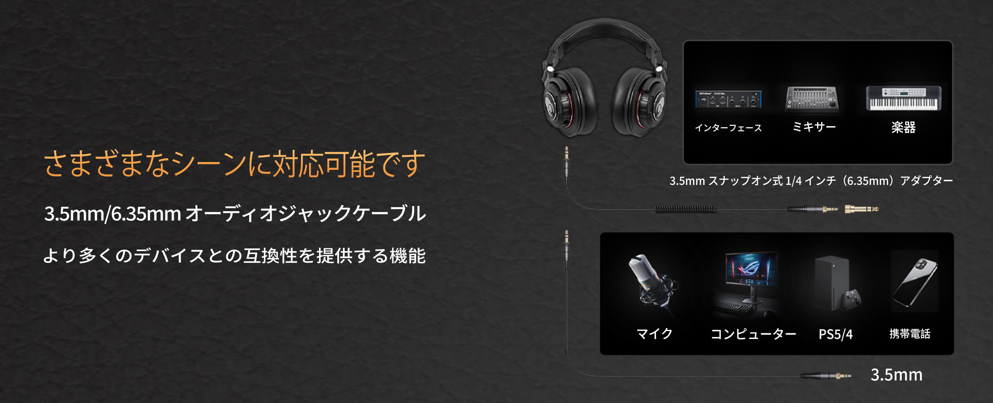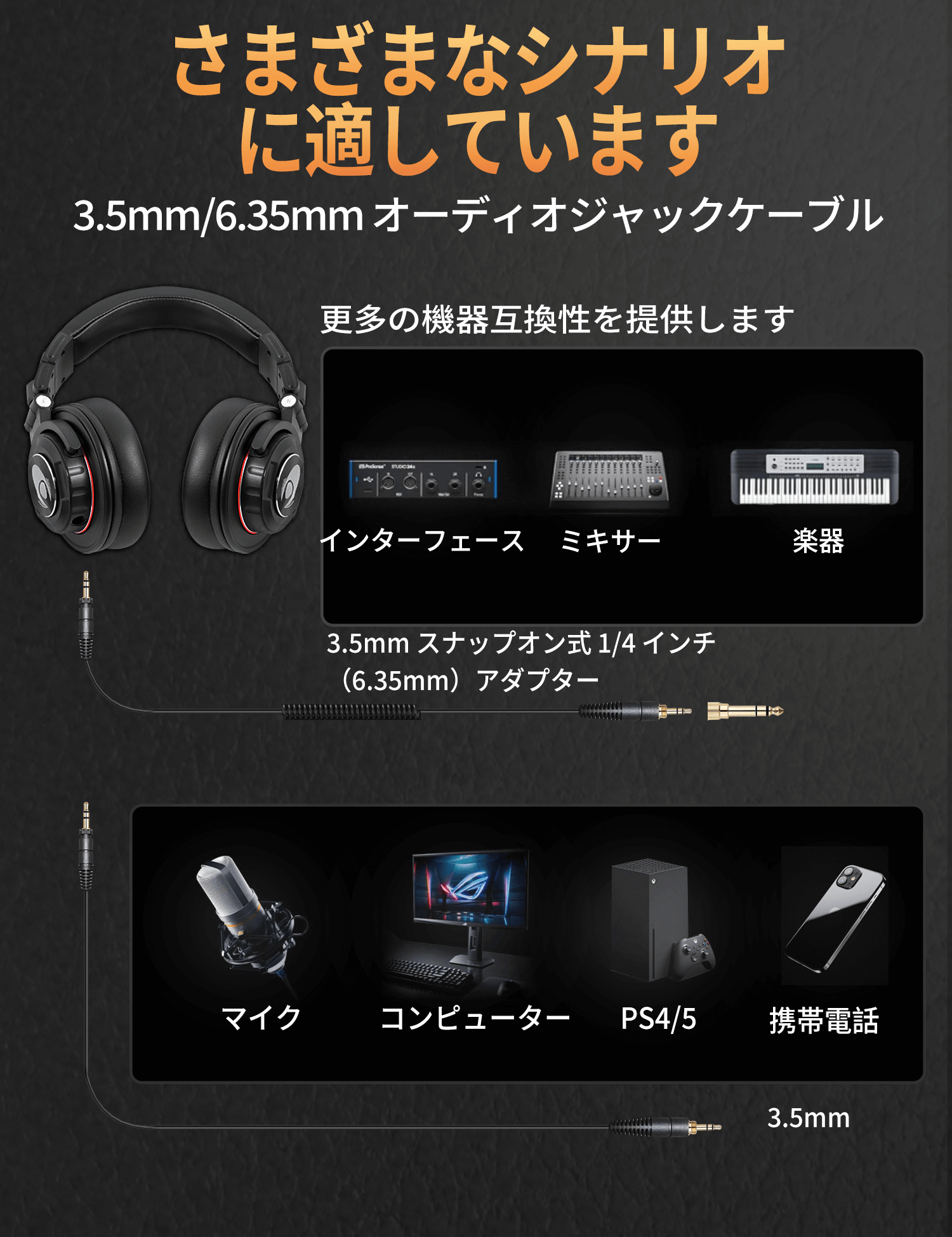 6.35mmと3.5mm両用ケーブル(3m) 1本