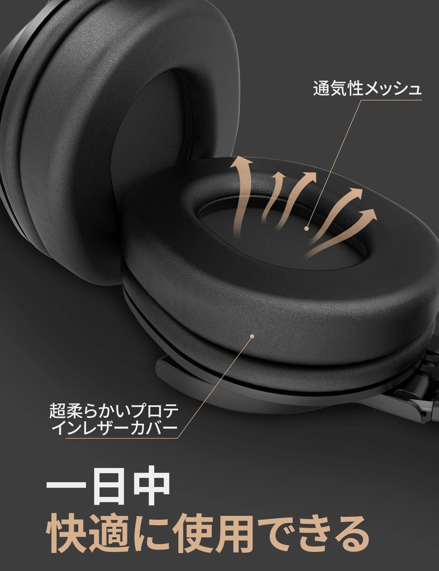 超ソフトなプロテインレザーカバーと通気性のあるメッシュは人間工学に適合し、耳を優しく包み込むため、W50xヘッドホンを一日中着用しても耳に不快感を感じません。完璧なフィット感は、圧力と音漏れを最小限に抑えるだけでなく、周囲の騒音も効果的に低減します。