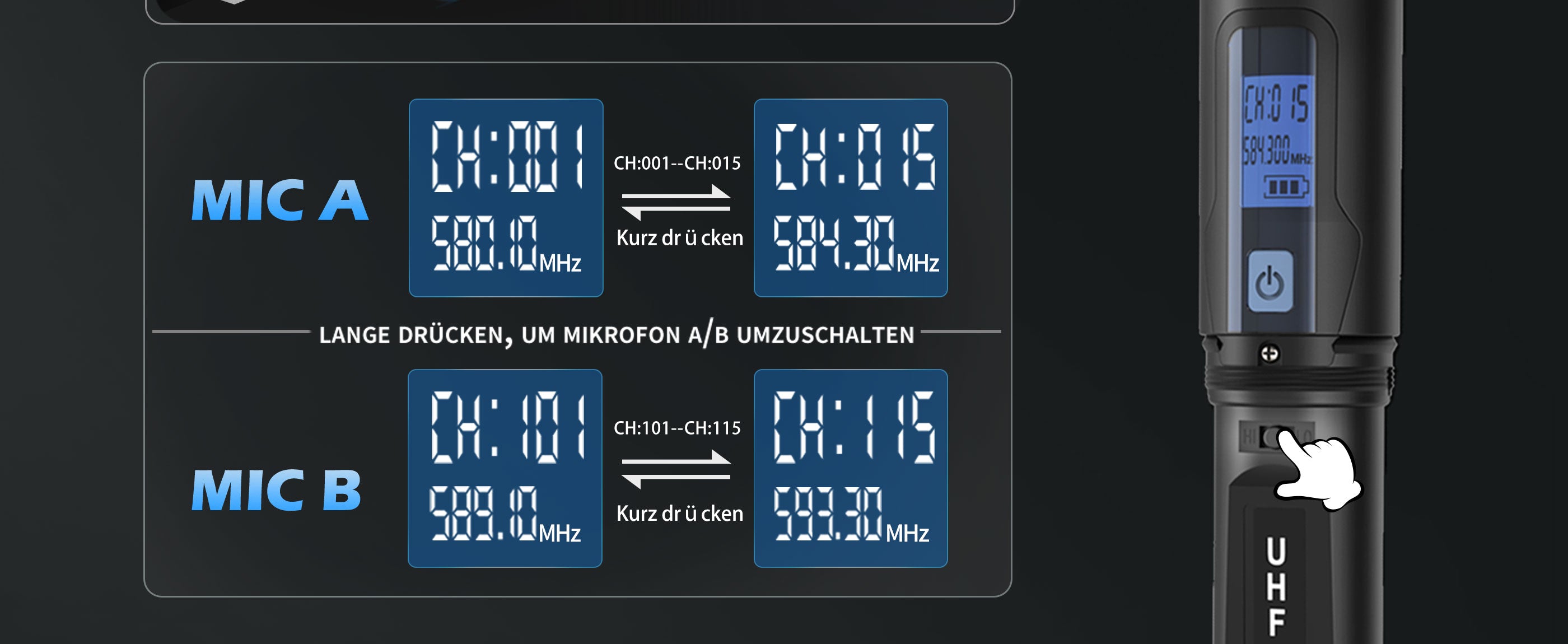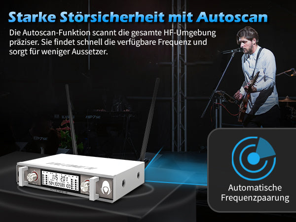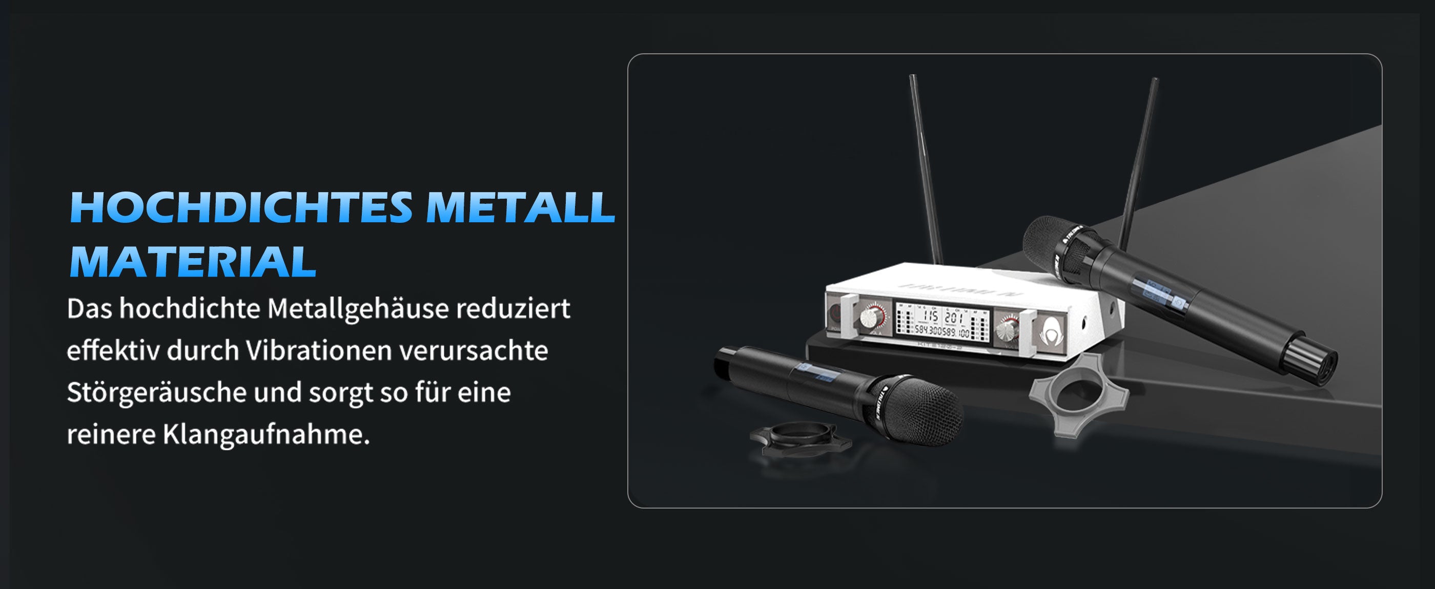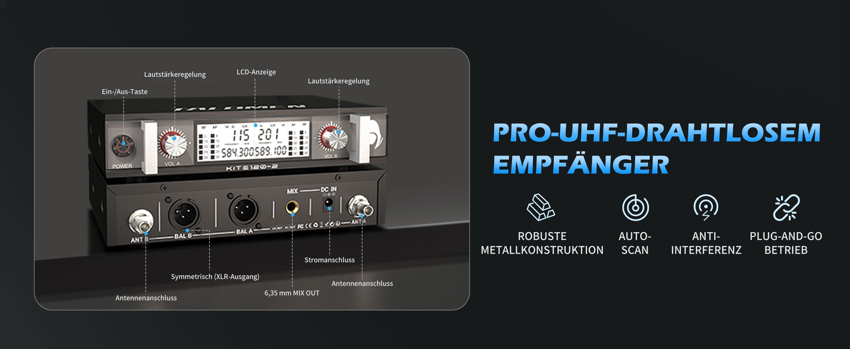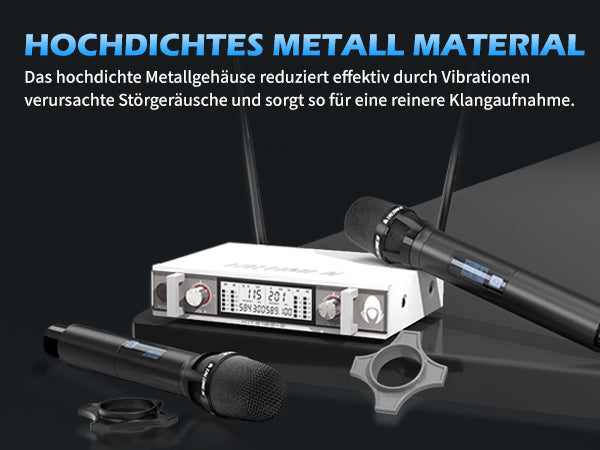 Das Talomen K120 ist ein drahtloses Zweikanal-UHF-Mikrofonsystem. Es umfasst einen Empfänger mit spezieller Antenne und zwei professionell abgestimmte dynamische Mikrofone. Es eignet sich perfekt für Gottesdienste, Karaoke-Abende, Hauspartys und mehr.